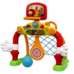 Throw the ball into the hoop or hit the paddle ball racket in the goal for lights and fun sounds