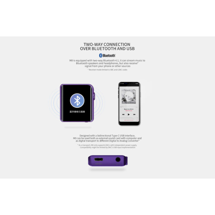 The M0 supports a wide range of high-resolution audio formats and boasts a 1.54” LG touchscreen for intuitive gesture control. With a CNC-machined aluminum body, curved tempered glass, and multiple color options, it’s as stylish as it is functional. Enjoy up to 15 hours of playback and 30 days of deep standby with the 630mAh battery. Perfect for wireless and wired listening, thanks to two-way Bluetooth 4.1 and bidirectional USB-C audio support.