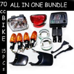 Upgrade and maintain your motorcycle with this complete 15-piece all-in-one accessories bundle, specifically curated for the 70cc Honda CD70 and similar bike models.