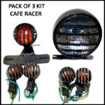Upgrade your motorcycle’s style, visibility, and safety with this Universal Pack of 3 Kit Cafe Racer Lighting Set, designed for 70cc to 125cc bikes. This complete bundle includes a bright Headlight, a high-visibility Taillight, and four (4) Indicators, giving your motorcycle a classic retro Cafe Racer look while improving your overall road presence.